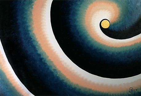 Dezentral angelegte Spirale. Symbold der Wiederkehr, aber auch gleichzeitig eine Ermutigung Fesseln und vorgegebene Rahmen zu sprengen. Harmonische und positive Austrahlung durch den goldnen Schnitt.